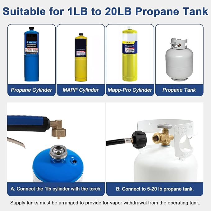 - Universal Compatibility & Dual-Mode Propane Torch: Designed to work with all standard propane tanks, this weed torch comes with a 10FT hose for total freedom to move around. Works with 1lb propane cylinders or 5-20lb standard propane tanks— so you’ve got options for any job, big or small