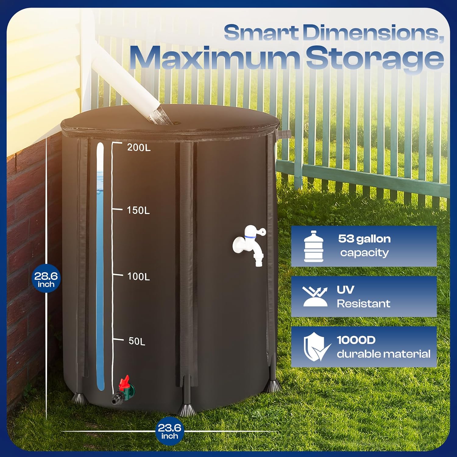 Collapsible Rain Barrel, Portable Rain Water Collection System Kit, 53 Gallon – Foldable Water Tank & Storage Reservoir with Spigot for Garden, Lawn, & Emergency Use