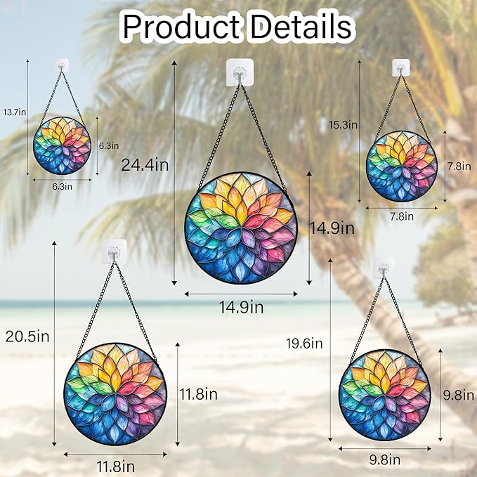 - Versatile and Easy to Hang: This stained glass window panel is a breeze to install with its included metal chain. Beautiful patterns are the perfect addition to your windows, doors, and home.
