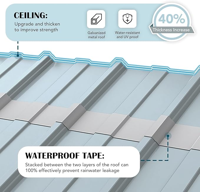 - Weather-Resistant Design: Built to withstand the elements, our carports feature high-quality waterproof paint and sealing strips that prevent leaks. Anti-cut rubber tape adds an extra layer of safety, shielding you from sharp edges