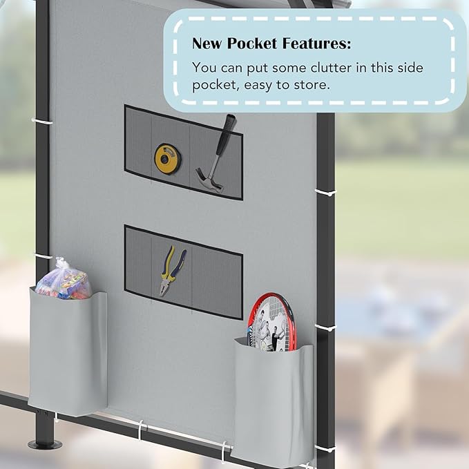 - Convenient Storage Pocket: Keep your tools handy with the included 2 PVC fabric side pocket. Easily attachable to any side of the metal carport frame with elastic buckles, it provides convenient extra storage right where you need it