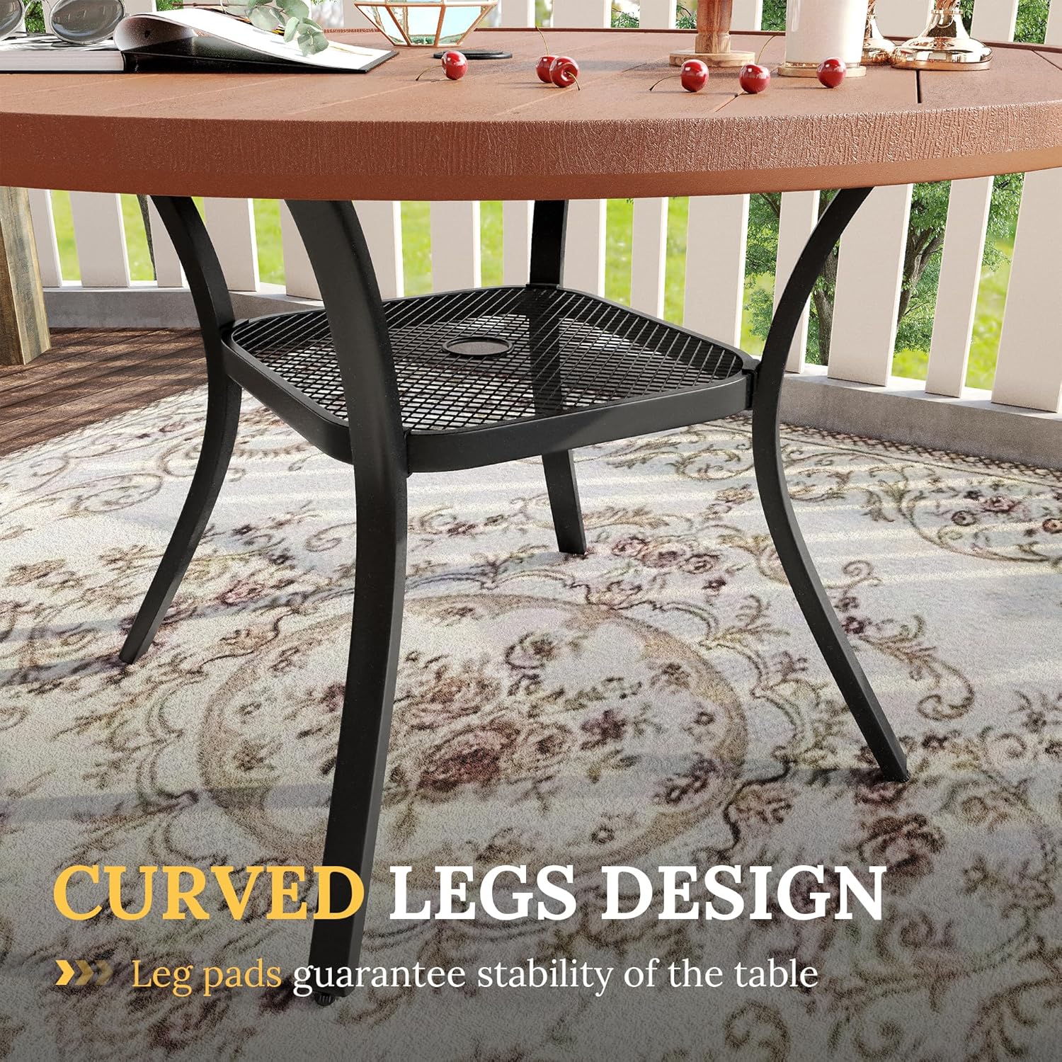 - 【41.7" Outdoor Round Table】Hand-polished for added elegance, the Vicllax outdoor round plastic tabletop boasts a wood-grain top featuring a wooden-like texture. Unlike ordinary wood, it will not crack, nor burn like a metal tabletop after prolonged sun exposure