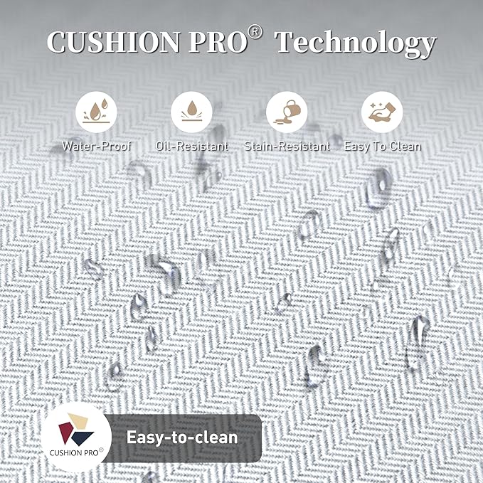 - CUSHION PRO TECHNOLOGY - EASY TO CLEAN: The fabric of this conversation set is applied with CUSHION PRO TECHNOLOGY. It's waterproof, oil resistant and stain resistant. The L-shaped zipper design make it easily removable for cleaning.