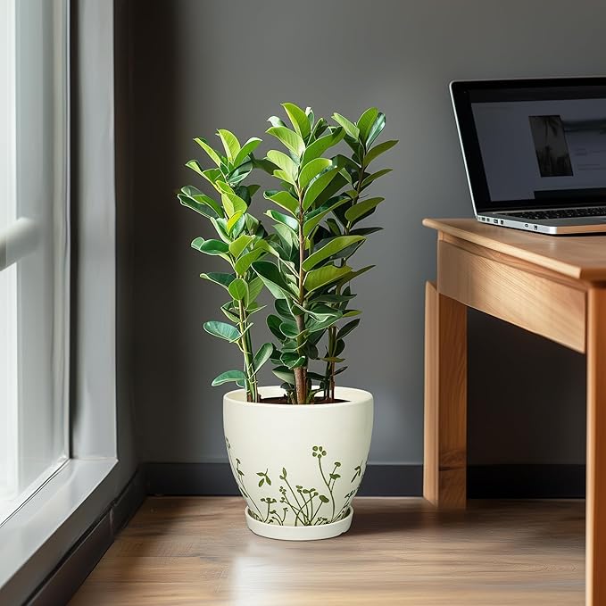 - Modern Design: With its sleek, glossy white finish, this 10 inch plant pot adds a stylish touch to any space. Ideal for home, garden, patio, balcony, office, livingroom decor, this indoor plant pot elevates your indoor aesthetic