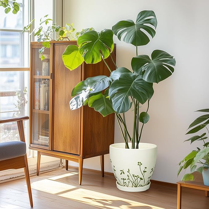 - Suitable for A Variety of Plants: This ceramic pots for plants ideal for indoor plants like olive tree, snake plant, money tree, zz plant, monstera, peace lily, palm, fiddle leaf fig, bird of paradise, pachira aquatica, and so on