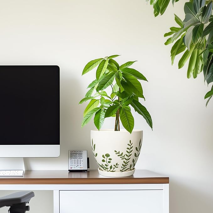 - Modern Design: With its sleek, glossy white finish, this ceramic planter adds a stylish touch to any space. Ideal for desks, windowsills, shelves, or home office decor, this indoor plant pot elevates your indoor aesthetic