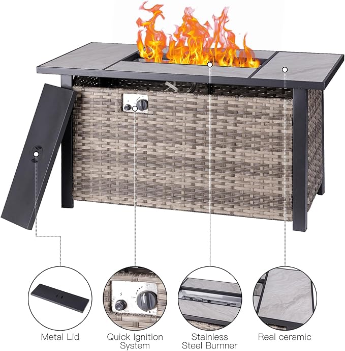 - [What You Will Get]: Our fire pits table for the outside come with all the accessories you need to install or use, including a rectangular fire pit table, a removable lid, and lava stones.We can provide replacement parts for the product. If you have any questions, please contact us.