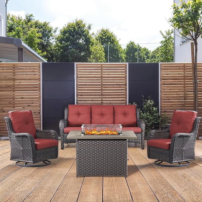 4 Piece Patio Furniture-with 50,000 BTU Gas Propane Fire Pit Table Outdoor Patio Furniture with Swivel Rocker Chairs,Outdoor Couch