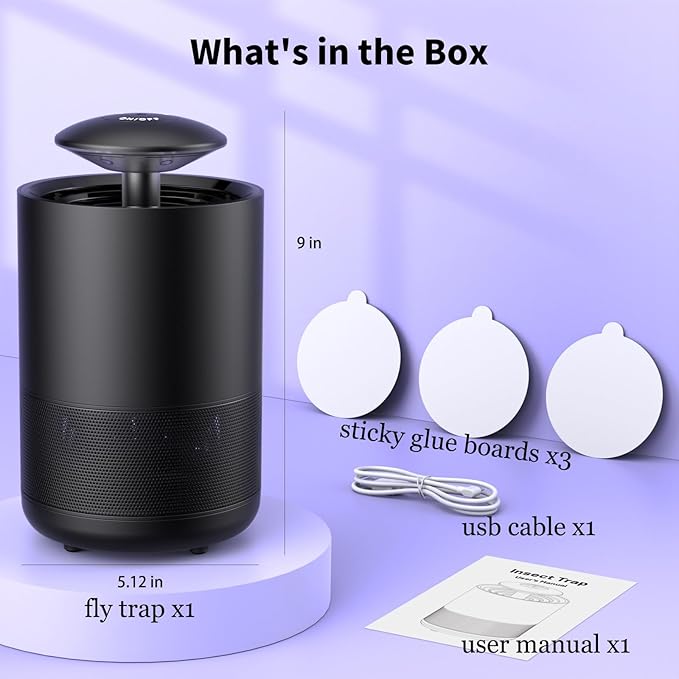 - Effective Flying Insect Trap: Attract and trap mosquitoes, fruit flies, gnats, flies, moths and other flying insects, help control the little insect in your kitchen, bedroom, living room, dinning room, yard, swimming pool, etc.