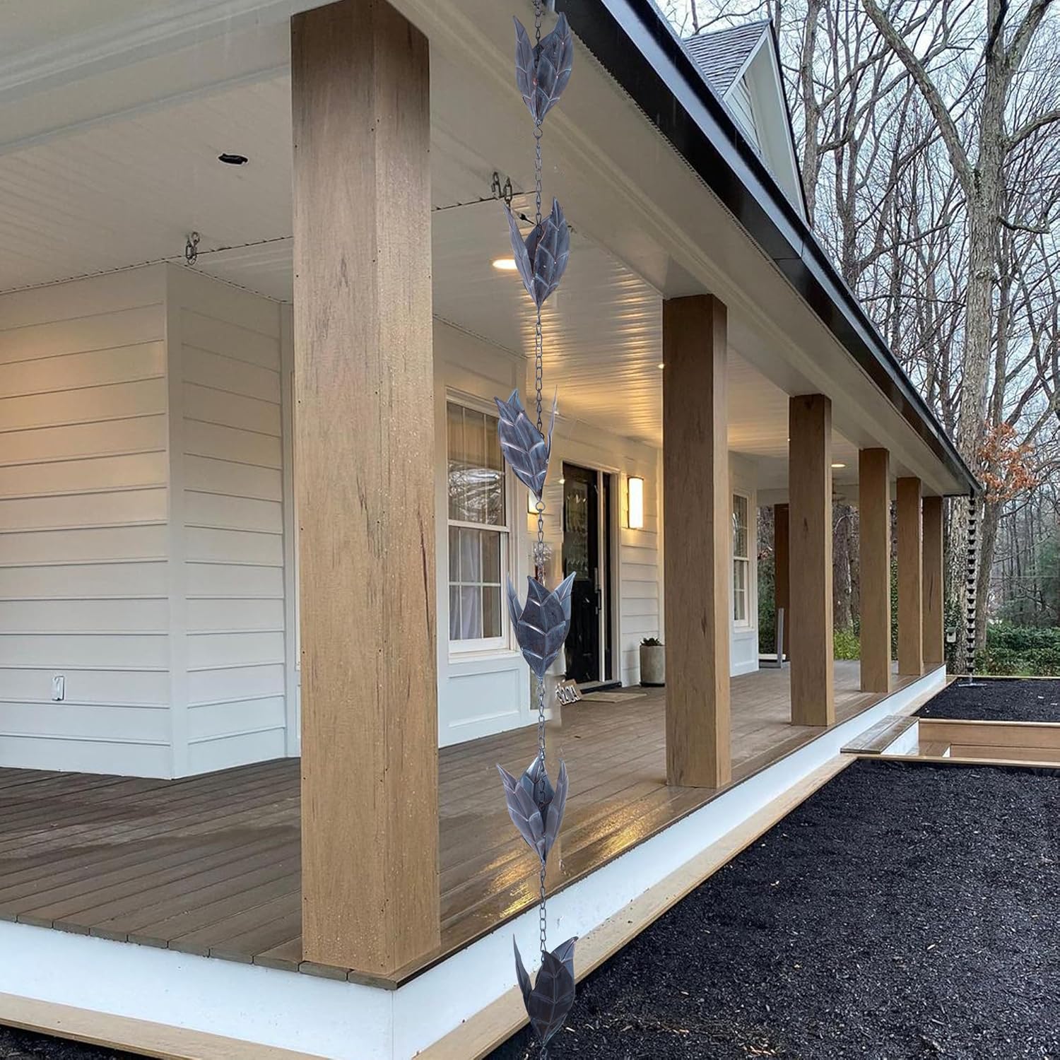 Rain Chain Decoration 8.5 FT., Rain Catcher Chain Gutter Downspout 102'' for House Eaves, Garden & Home, Leaf Shape Rain Chains