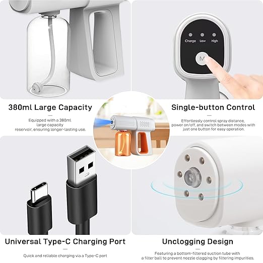 - 【USB Rechargeable】380ml large-capacity water bottle, Superfine Atomized Particles. Suitable for most liquid. Also this sprayer is highly portable and can be used anywhere you need to use it.
