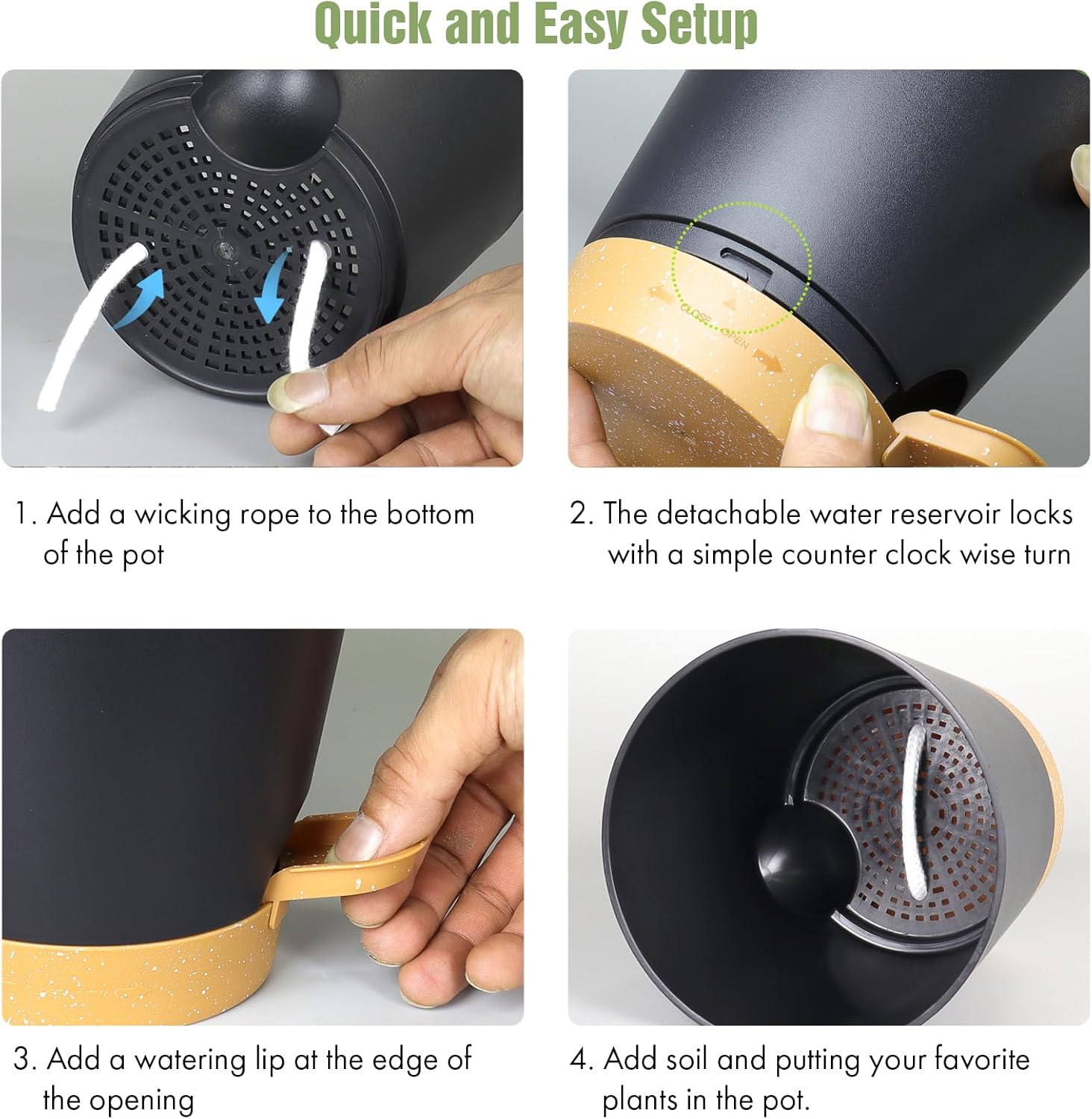 - 【Self-Watering Design】These 4 inch self watering pots for indoor plants are designed with a wick rope that draws water from the reservoir at the bottom. The set of 6 plastic self watering planter provides an optimal air circulation system for plant roots