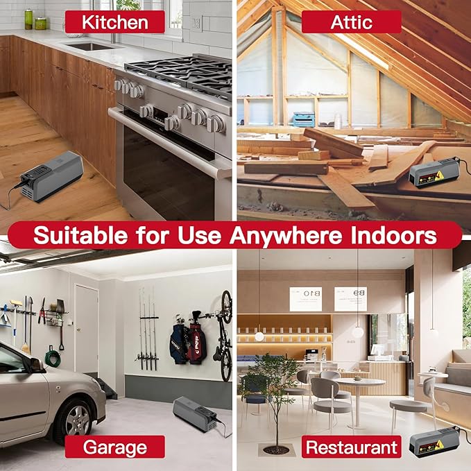 - For Indoor Use - Suitable for a variety of indoor locations such as home, garage, attic, hotel, factory and office. Please note that our electronic mouse traps are for indoor use only.