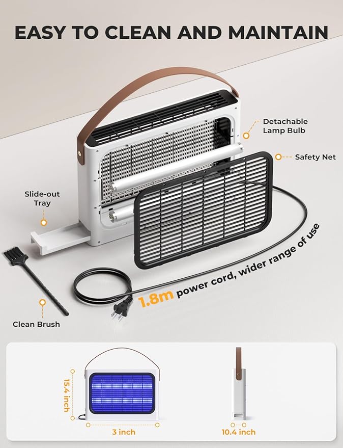 - (Easy to Use and Clean Pull Out Collection Tray) The collection tray of this bug zapper is easy to remove and clean with a brush. The bug zapper is designed to be quiet when in operation and attract and kill various flying insects, for example fruit flies, gnat, mosquito,etc