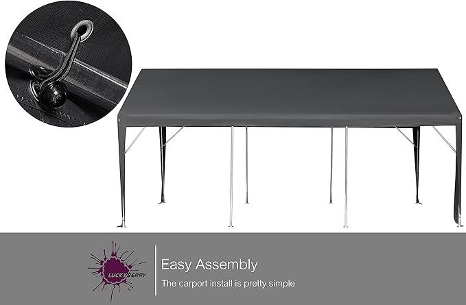 - More durable tarp. Rain, snow, sand, and UV rays never stand a chance of damaging your car. The special 180g extra thick polyethylene fabric of this carport is UV-resistant, water-resistant, and tear-resistant to provide maximum protection for your vehicle in harsh environments.