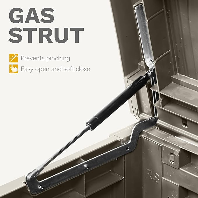 - Effortless Access & Secure Closure: Measuring 61"L x 28.4"W x 25.4"H, this XL outdoor storage box features dual hydraulic struts for smooth, controlled lid operation; The lockable lid keeps your belongings safe from the elements and unwanted access