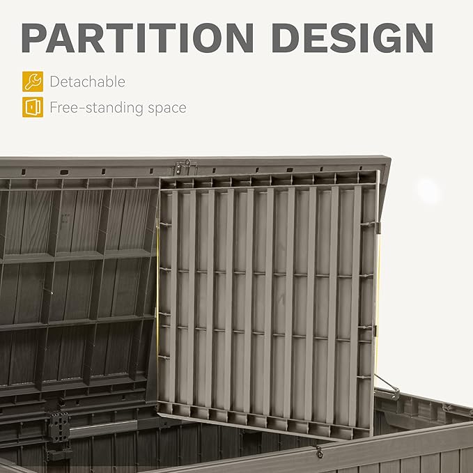 DWVO 150 Gallon XL Deck Box with Divider & Lockable Lid, Waterproof Resin Outdoor Storage for Patio, Garden, Poolside, Cushions, Supplies & Sports Gear, Light Brown