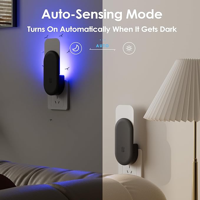 - 🐞 3-in-1 Fly Trap Indoor: Trap + Night Light + Auto Sensor, This fly trap indoor unit from Hogius combines a powerful UV bug zapper, soft night light, and smart light-sensing function. It effectively attracts and traps flying insects like gnats, fruit flies, mosquitoes, and moths—perfect for day and night use.