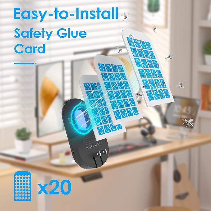 - 🧲 Easy to Use – Includes 10 Replaceable Glue Boards:Plug and play design—just insert into any standard outlet. The package includes 4 Black fly trap device and 20 strong glue cards, ensuring long-lasting protection. A reliable indoor bug zapper alternative for a cleaner, bug-free home.