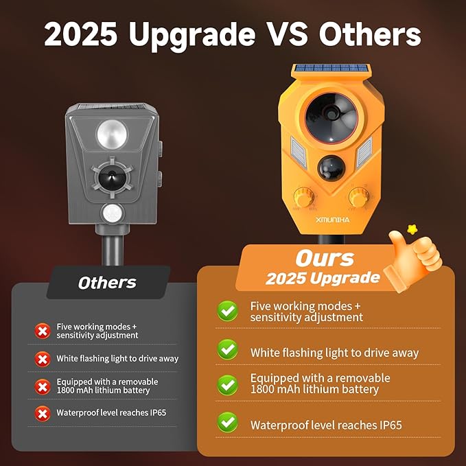 - Solar powered and waterproof: The Ultrasonic Animal Repeller is charged by solar energy for energy saving and environmental protection, IP65 waterproof, even in extreme outdoor environments, with a very low failure rate and easy to maintain