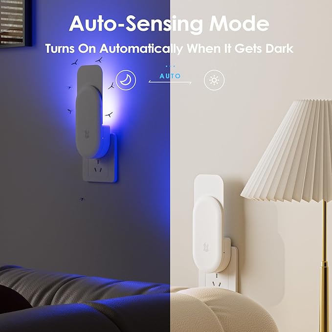 - 🐞 3-in-1 Fly Trap Indoor: Trap + Night Light + Auto Sensor, This fly trap indoor unit from Hogius combines a powerful UV bug zapper, soft night light, and smart light-sensing function. It effectively attracts and traps flying insects like gnats, fruit flies, mosquitoes, and moths—perfect for day and night use.