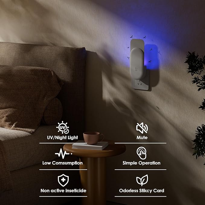 - 🧲 Easy to Use – Includes 10 Replaceable Glue Boards:Plug and play design—just insert into any standard outlet. The package includes 4 White fly trap device and 20 strong glue cards, ensuring long-lasting protection. A reliable indoor bug zapper alternative for a cleaner, bug-free home.