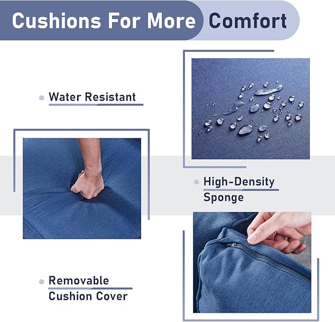 - 4" Soft Thickness Cushions: Patio furniture cushion is filled with high-density sponge and the cover is made of UV Resistant outdoor olefin fabric, which provides better comfortable seating experience. Removable zipper design, easy to replace and clean.