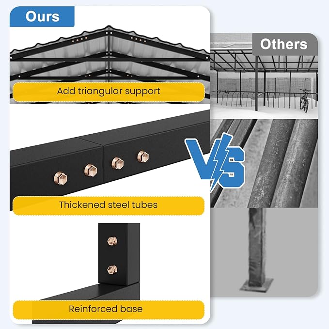 - Easy Installation: YOLENY's carport comes with detailed instructions and video guides. Each accessory is packaged in 7 easy-to-identify bundles. All parts fit seamlessly together, minimizing installation issues and saving you time and effort