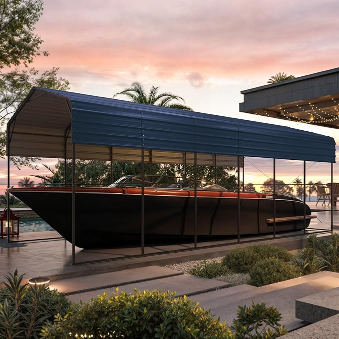 - Durable & Stable Design: Built with a 0.5mm galvanized steel roof, 28 powder-coated 2"x2" steel posts, and 30 reinforced support rods, this carport ensures exceptional strength and corrosion resistance. Enhanced by steel wire cables, it prevents tilting or collapse, offering reliable protection for RVs, cars, trucks, boats, and tractors