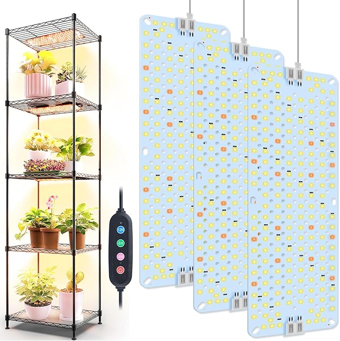 3Pack Panel Grow Lights for Indoor Plants, Seed Starting, Vegetables, Pot Plants, Bonsai with Timer, Ultra-Thin Under Cabinet & Shelf Full Spectrum LED Plant Growing Lamps, Multi-Panels Free Connect