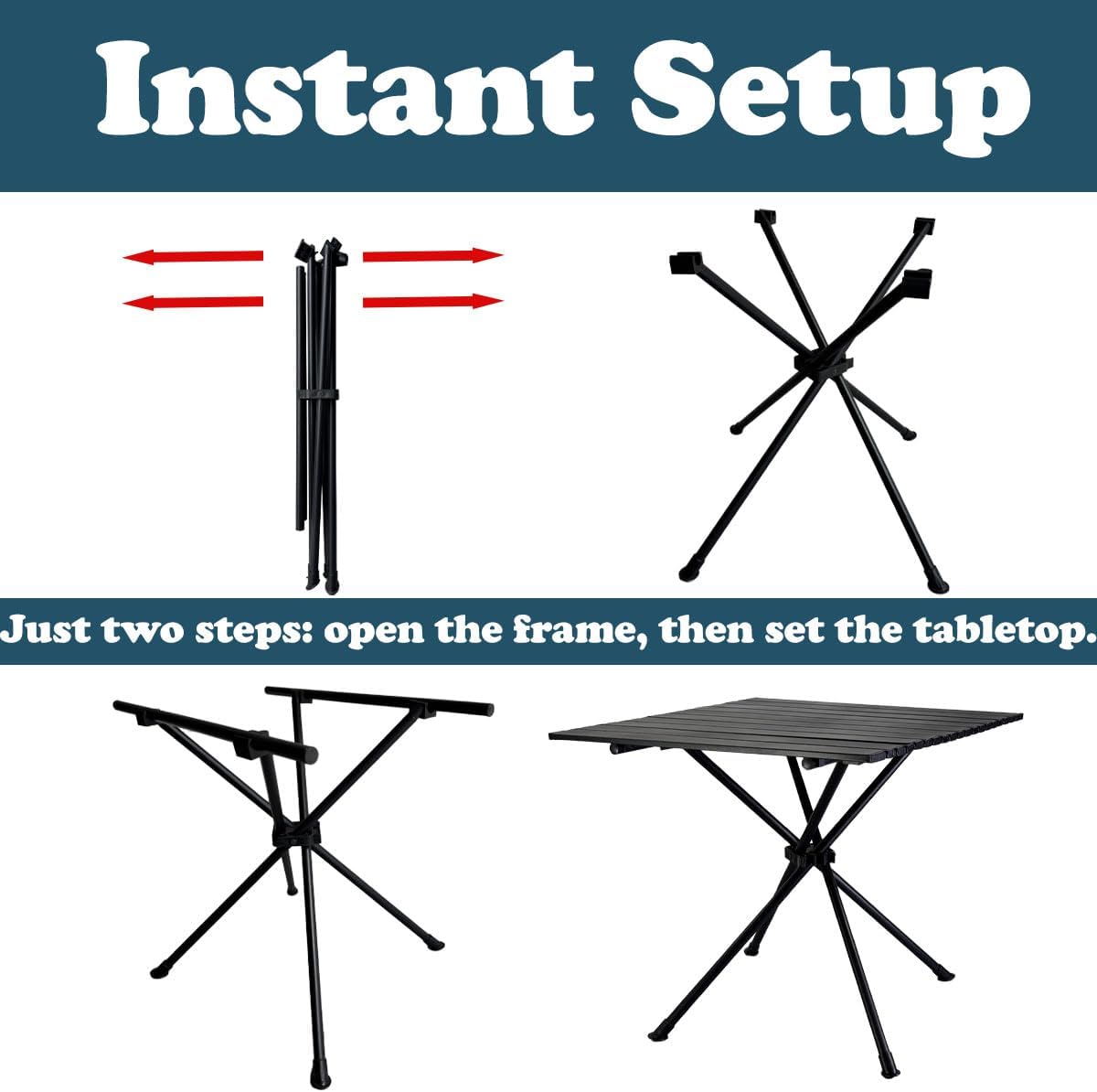 - [High Quality]: Constructed from thick carbon steel, the folding camping tabletop and legs are durable, waterproof, fade-resistant, and easy to clean.