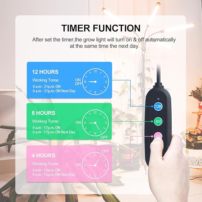 - Smart 4-8-12H Timer---Auto Cycles for Perfect Plant Care (Set It & Forget It!)