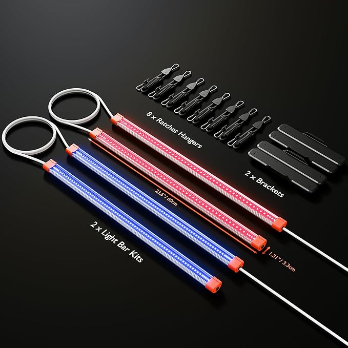 - 【HIGH-DENSITY LED ARRAY】Among all the supplemental light bars on market, the supplementary light bars in the Supply series feature the most densely arranged diodes, specifically designed to enhance plant growth. Our 23.6-inch(60cm) UV & IR light bar set consists of 4 bars, each UV light bar equipped with a durable and sturdy metal casing and 60 diodes, while each IR light bar equipped with a durable and sturdy metal casing and 44 diodes.