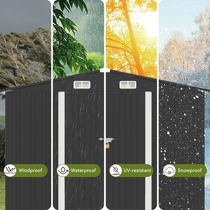 - Waterproof Tool Shed:The sloping roof design of this storage outdoor shed maximizes space utilization;effectively direct rainwater away from the structure to prevents the leakage,Don't worry about your items getting wet