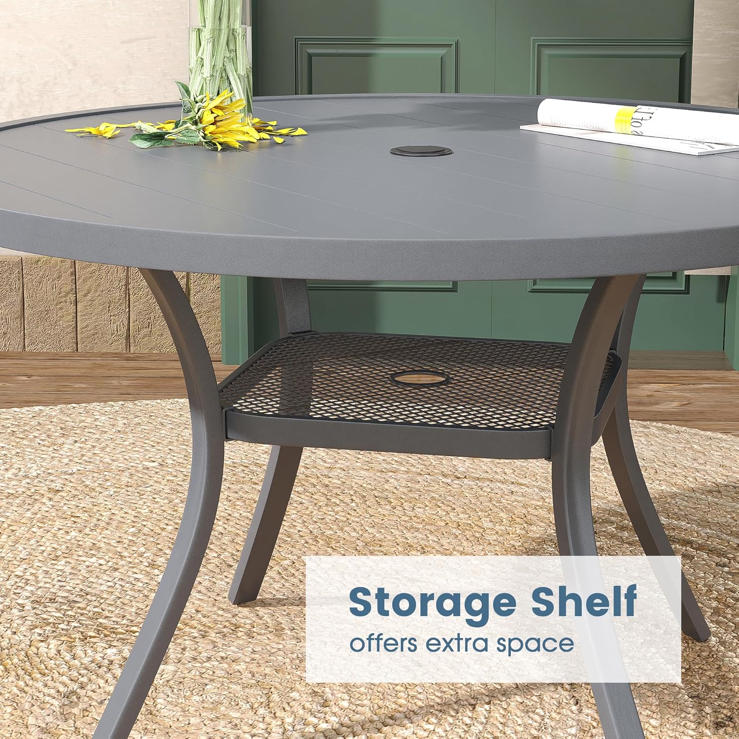 DIFY 48" Round Patio Dining Table for 6, All Weather Round Outdoor Metal Dining Table with 1.57" Umbrella Hole, Perfect for Backyard Lawn Garden, Grey