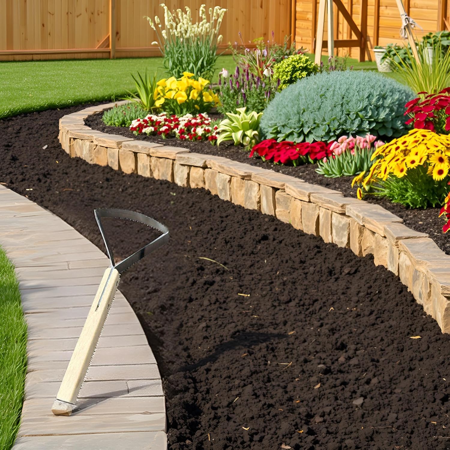 - Weed Hand Rake-Comfort-First Handle: Ergonomically shaped wood grip minimizes hand strain during prolonged gardening sessions.