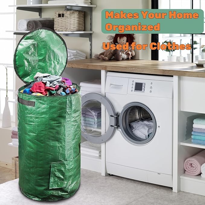 - Easy to Use Leaf Bag: These yard waste containers are designed with zipper openings at the top, which is easy and convenient for you to open and check the fermentation status of compost, or take out the contents. Two reinforced nylon handles allow you to easily carry the yard trash bags or lift them high when dumping them.