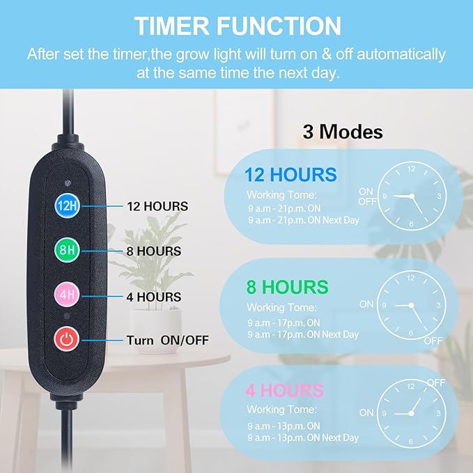 - 【Auto 4/8/12H Timer On/Off Daily】This table top bonsai grow light designed with 4/8/12H built-in timer. Set it and forget it. Your plants will thrive.