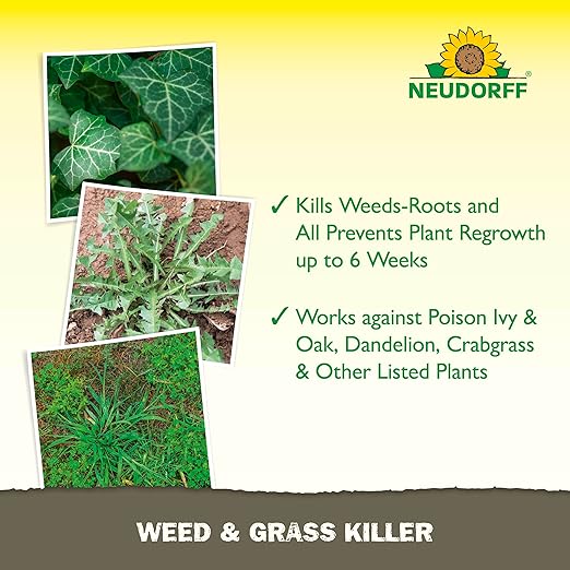 - Rainfast after 3 Hours - Rainfall or Light Watering Will Not Wash away the Product & Neudorff Weed and Grass Killer Does Not Stain Concrete, Pavement, Stucco, and Wood, Perfect for Weed Control.