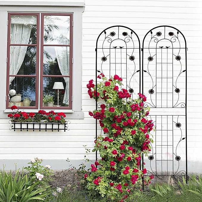 - Multi Purpose Garden Trellis: This outdoor garden trellis provides support for climbing plants, such as ivy, rose, cucumber. The black garden metal trellis can be used to form privacy screens.
