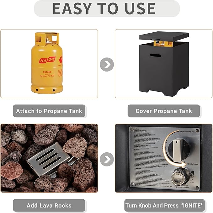 - High Quality & Easy to Use: All built to last from sturdy, fire retardant magnesium oxide with high-quality 304 stainless steel , low maintenance and resistant to heat. Just turn the knob to create flames and adjust flame intensity (AAA Battery required)
