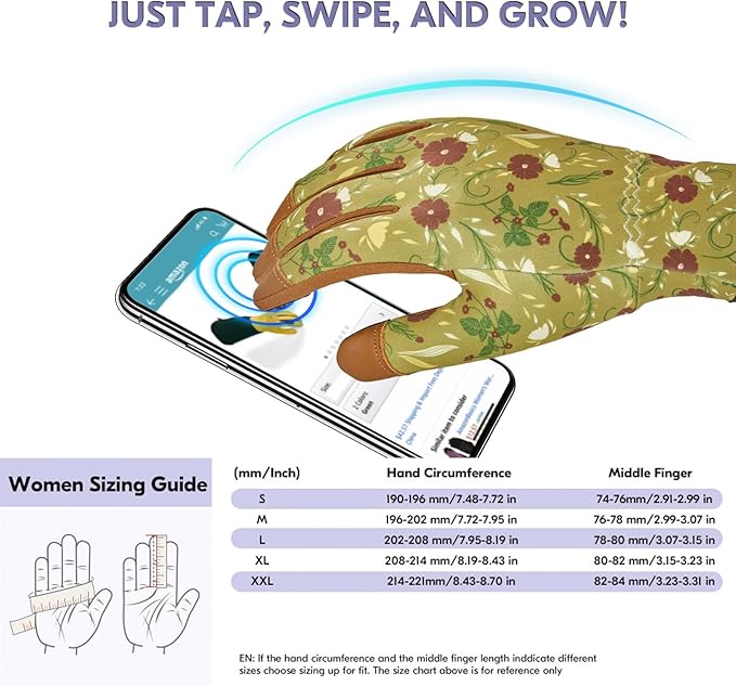 • PRECISION THAT FEELS EFFORTLESS -Answer calls/texts mid-task with conductive fingertips design. Pre-curved fingers and angled joints move with your hands, not against them. Whether delicately sowing seeds or trimming rosemary stems, the gloves disappear on your skin like a gardener's muscle memory