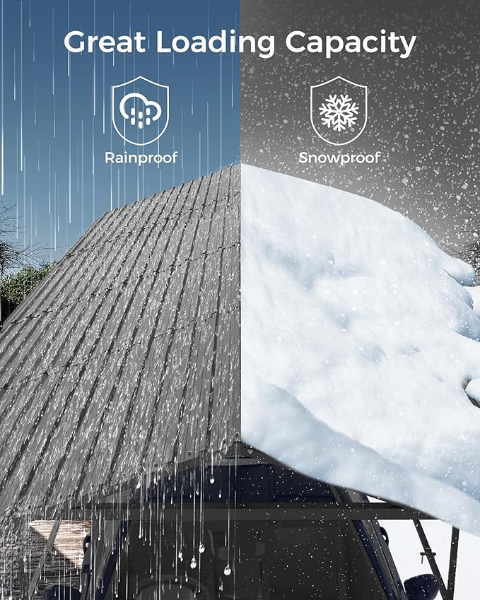 - 【STABLE STRUCTURE 】this metal carport has been fitted with 3 durable bars on the roof, the resulting triangular structure and reinforced slots increase the garage's load-bearing capacity