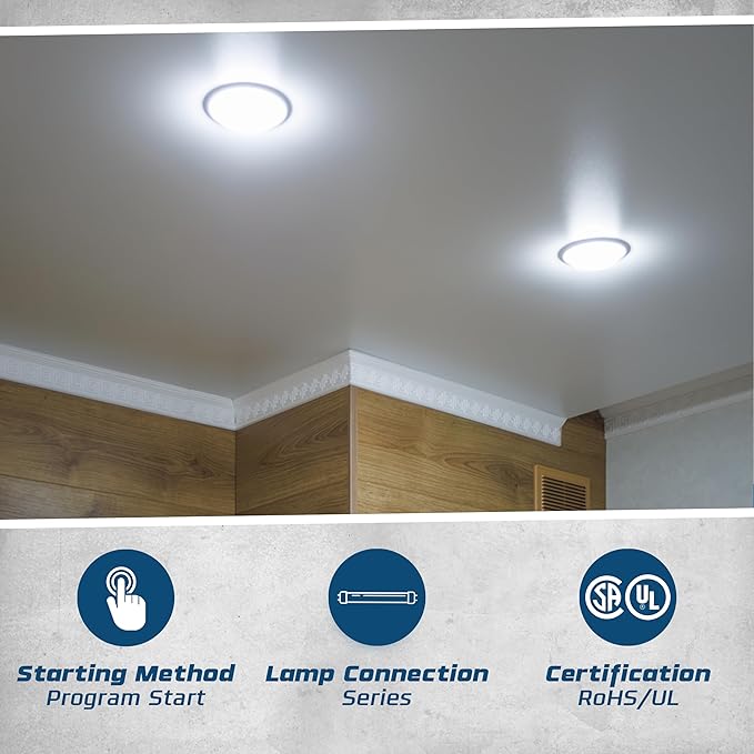 - Programmed Rapid Start: Features a rapid start system that minimizes flicker and promotes smoother, flicker-free operation, extending the lifespan of your lamps.