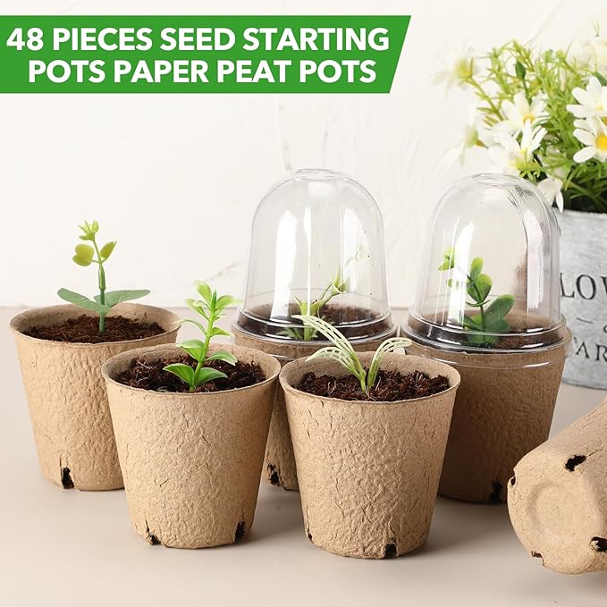 48 Pcs 3. 2 Inch Nursery Pots with Humidity Dome, Plant Seeding Starter Peat Pots for Planting, Flower Germination, Herbs and Vegetable Saplings, Indoor Outdoor Use