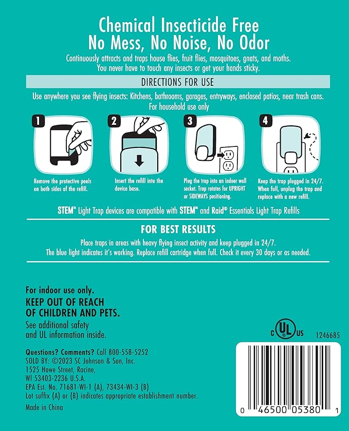 - INSECTICIDE-FREE: This discreet, plug-in flying insect trap is crafted without chemical insecticides; no mess, no noise, no odor