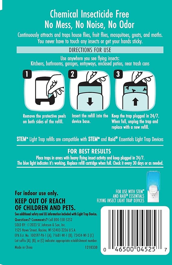 - INSECTICIDE-FREE: This discreet, plug-in flying insect trap is crafted without chemical insecticides; no mess, no noise, no odor