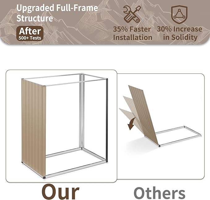- 【Superior Frame Upgrade】WKM tool sheds feature the latest in full-frame construction, averaging a 30% improvement in ease of installation and stability. The door of the storage shed can be locked for security and comes with durable corner guards. Its sturdy construction withstands all weather conditions, ensuring durability even in rain and snow.