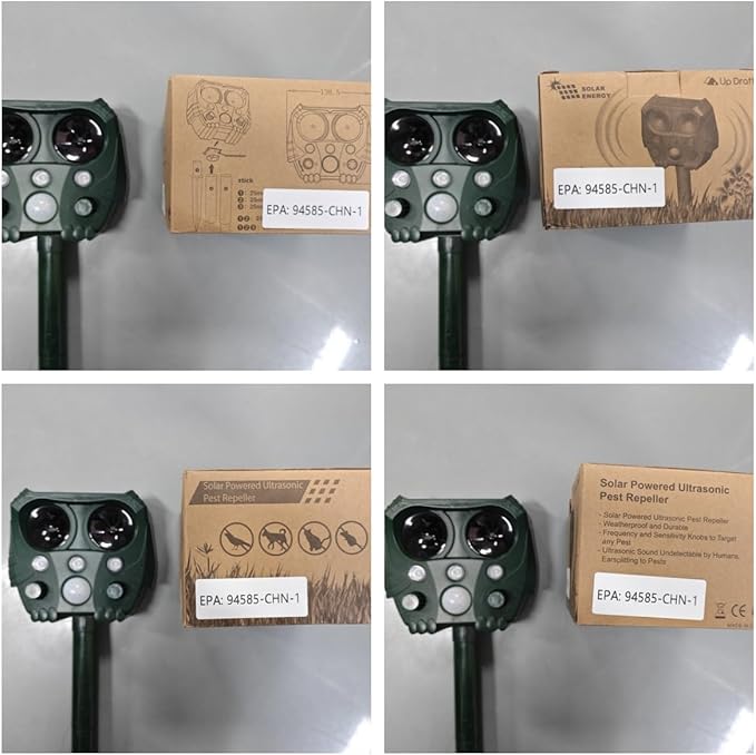 - Tip of Solar Ultrasonic Repellent: Please note that ultrasonic frequencies are typically beyond human hearing range. If no sound is heard when the device is on, particularly in modes 2 and 3, this is normal and not a sign of malfunction. The device is functioning correctly; the ultrasonic frequency is just inaudible to humans. Ensure to fully charge it before first use and place it in a sunny location