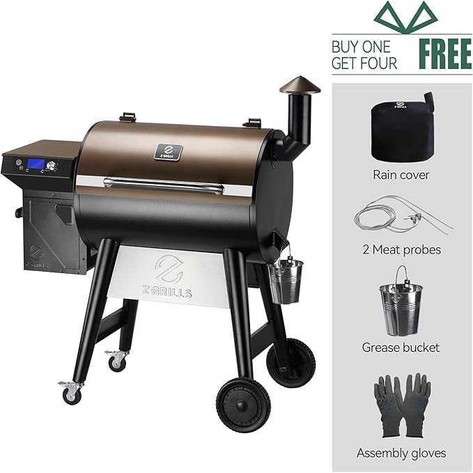 Z GRILLS Wood Pellet Grill & Smoker, 8-in-1 Outdoor BBQ Grill with PID 2.1 Controller, 697 sq in Cooking Area, 2 Meat Probes, LCD Screen, Rain Cover Included